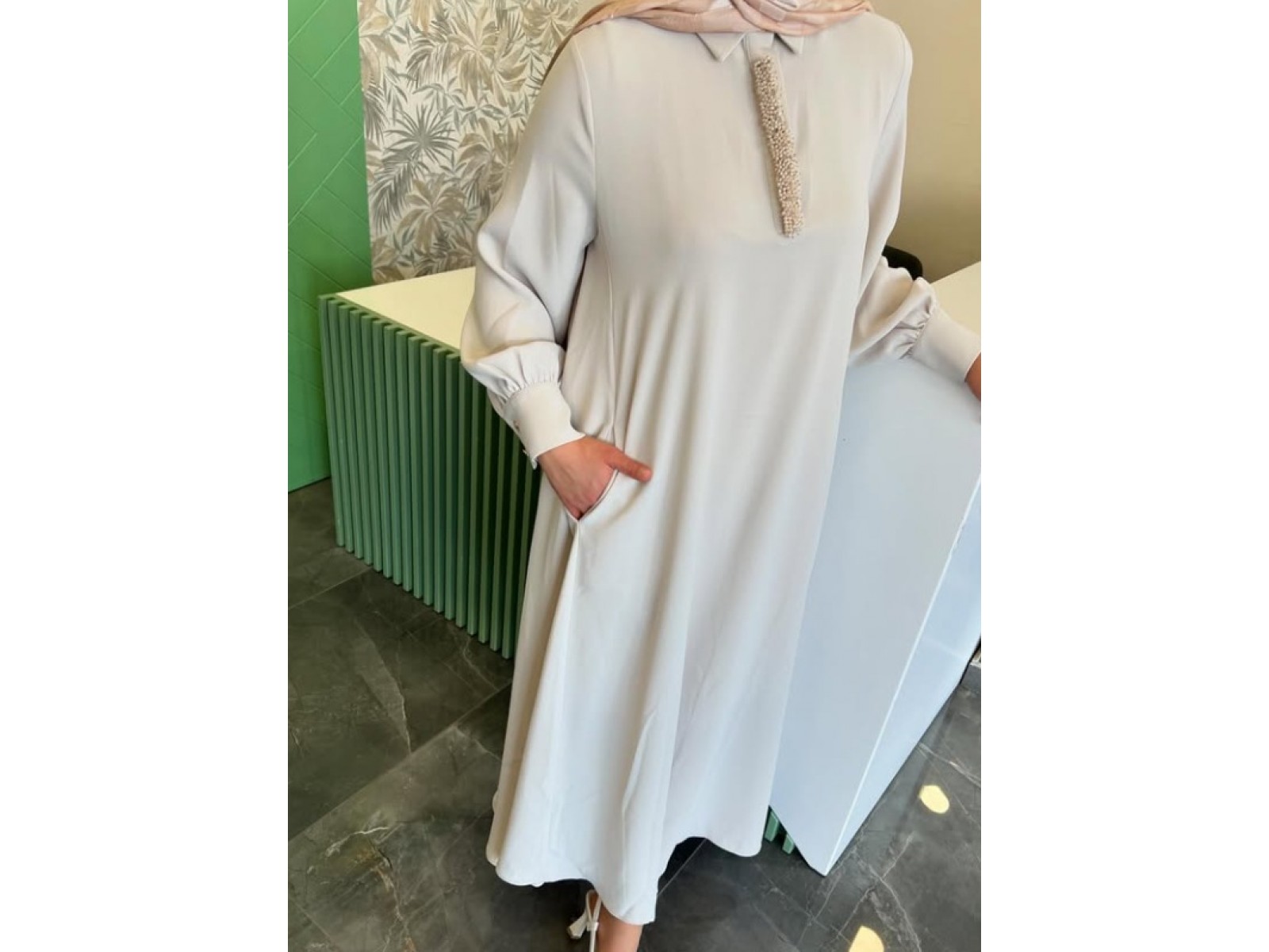 SELVİ ÇETİN MARKASINA AİT YAKASI TAŞLI ELBİSE